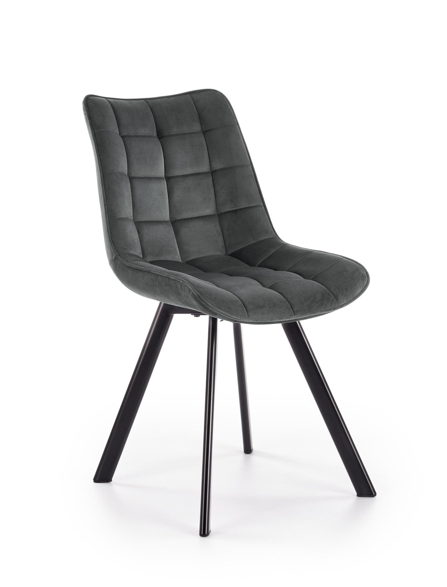 Krzesło K332 to propozycja dla osób ceniących styl i wygodę. Jego wyrafinowany design sprawia, że doskonale odnajdzie się w różnych aranżacjach. Krzesło w ciemnym popielatym kolorze zachwyca swoją wizualnością i wyjątkową wygodą. Jego ponadczasowy styl sprawia, że doskonale wpisuje się zarówno w nowoczesne, jak i klasyczne wnętrza, dodając im elegancji. Jest idealnym wyborem zarówno do jadalni jak i do salonu, biura lub innych pomieszczeń, gdzie liczy się atrakcyjny wygląd i komfort. Miękka i aksamitna w dotyku tkanina welurowa nadaje wnętrzu ciepła i przytulności. Estetykę krzeseł zwiększają dekoracyjne pikowania na siedzisku i oparciu, a czarne metalowe nogi dodają mu nowoczesnego charakteru.